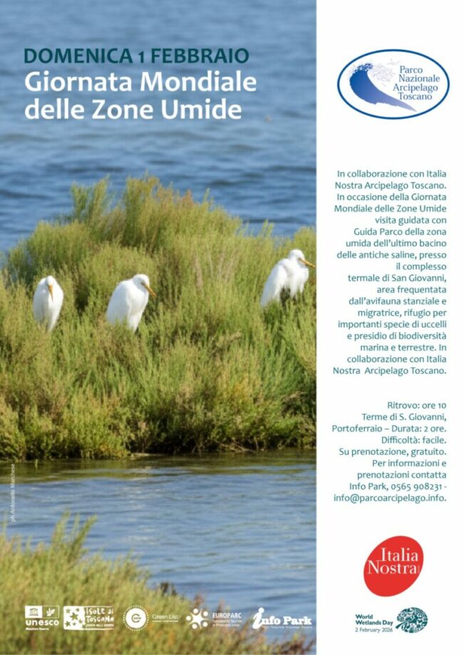 In attesa della pubblicazione ufficiale del catalogo “Vivere il Parco 2026”, prevista nei prossimi giorni, il Parco Nazionale Arcipelago Toscano inaugura le attività di fruizione turistica del nuovo anno con un primo appuntamento dedicato alla natura e alla biodiversità. Domenica 1° febbraio 2026, in occasione della Giornata Mondiale delle Zone Umide (World Wetlands Day), è…