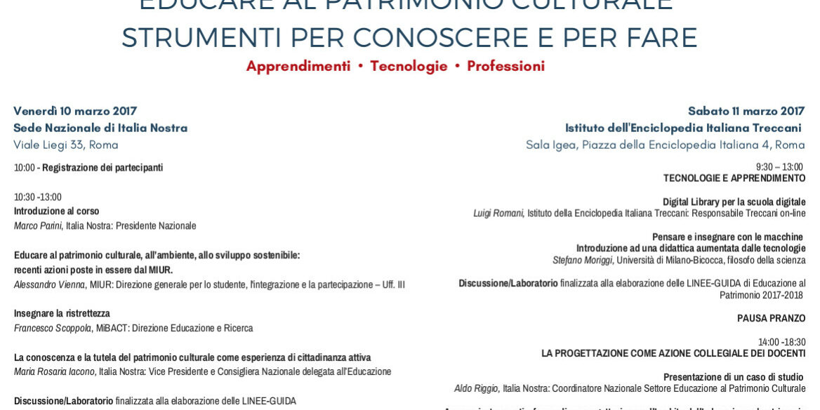 Quest’anno, al V° Corso di Formazione Nazionale e Seminario programmatico “Le pietre e i cittadini” dedicato ai referenti Educazione e agli insegnanti di Italia Nostra Onlus che si terrà a Roma nei giorni 10, 11 e 12 marzo 2017, Italia Nostra Arcipelago Toscano sarà rappresentata dalla socia Alessandra Contiero, nella sua veste di membro del Gruppo di lavoro “Scuola” della nostra Sezione, e incaricata per la Cultura dal suo dirigente scolastico nell’Istituto Comprensivo Giovanni Pascoli di Portoferraio.