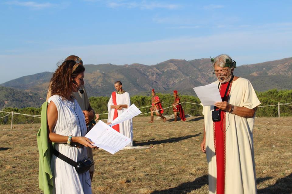 In una calda serata estiva nello scenario spazioso e panoramico del promontorio delle Grotte, con la regia e sceneggiatura, nonché “voce narrante” della giovane direttrice scientifica, l’archeologa Laura Pagliantini, ha avuto luogo giovedì 27 luglio una rievocazione della vita e opere del poeta latino. Il grande Ovidio è tornato tra noi, sotto la scorta di centurioni armati ma gradito ospite dell’amico e padrone di casa della nobile ed antica famiglia dei Valerii, nel momento di maggiore crisi nella vita del poeta: la consegna della notifica di espulsione da Roma, arrivata all’isola d’Elba direttamente dall’imperatore Augusto, con la conseguente relegatio a Tomi, ai confini dell’impero, nell’attuale Romania.