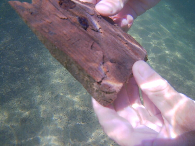 Durante l’immersione nell’area del relitto, a cui fanno riferimento le foto subacquee, scattate a circa 40 giorni dall’inqualificabile episodio, sono ancora ben visibili due trincee con sassi anche di grandi dimensioni dove il fondale era piatto e sabbioso.