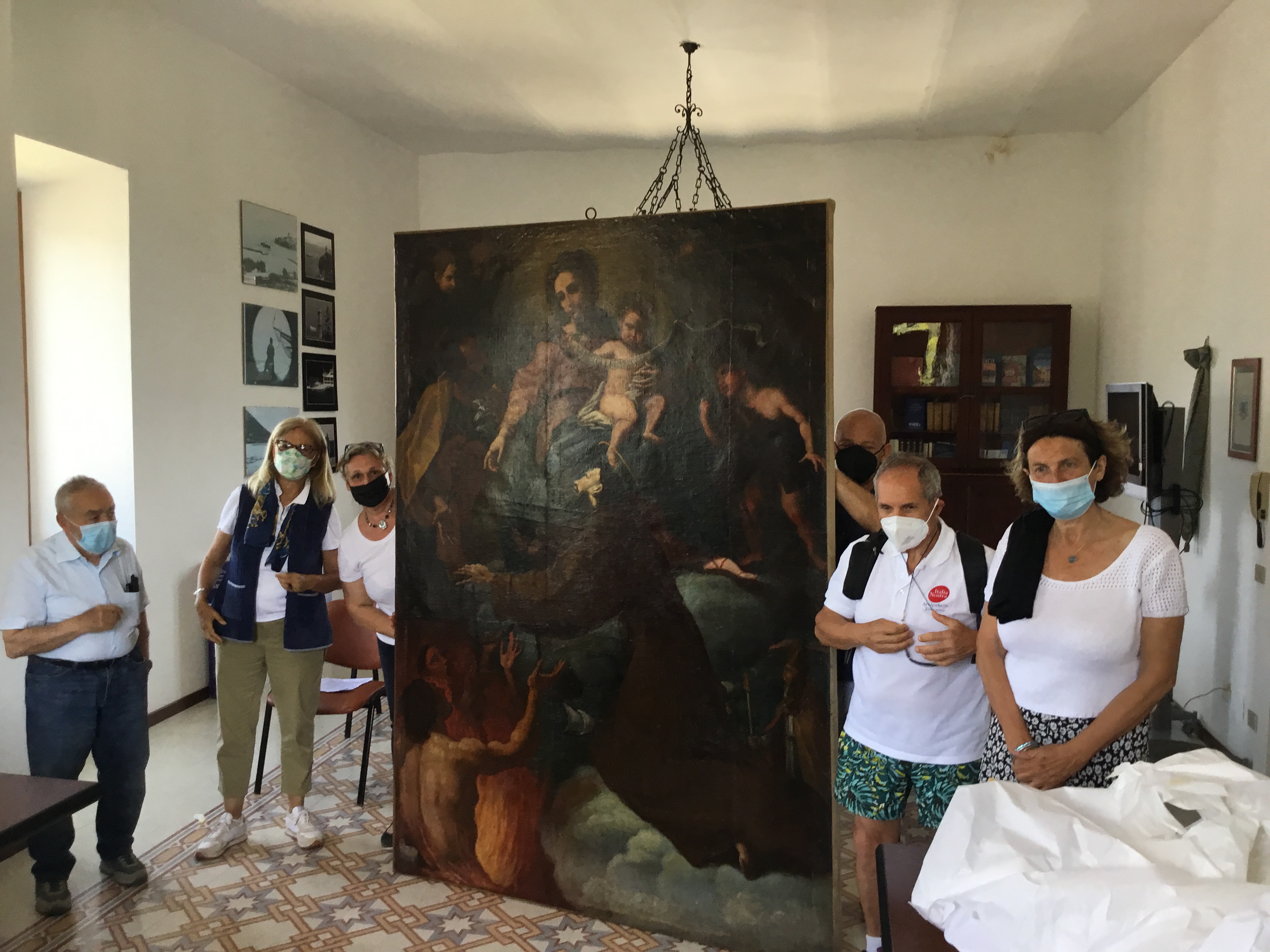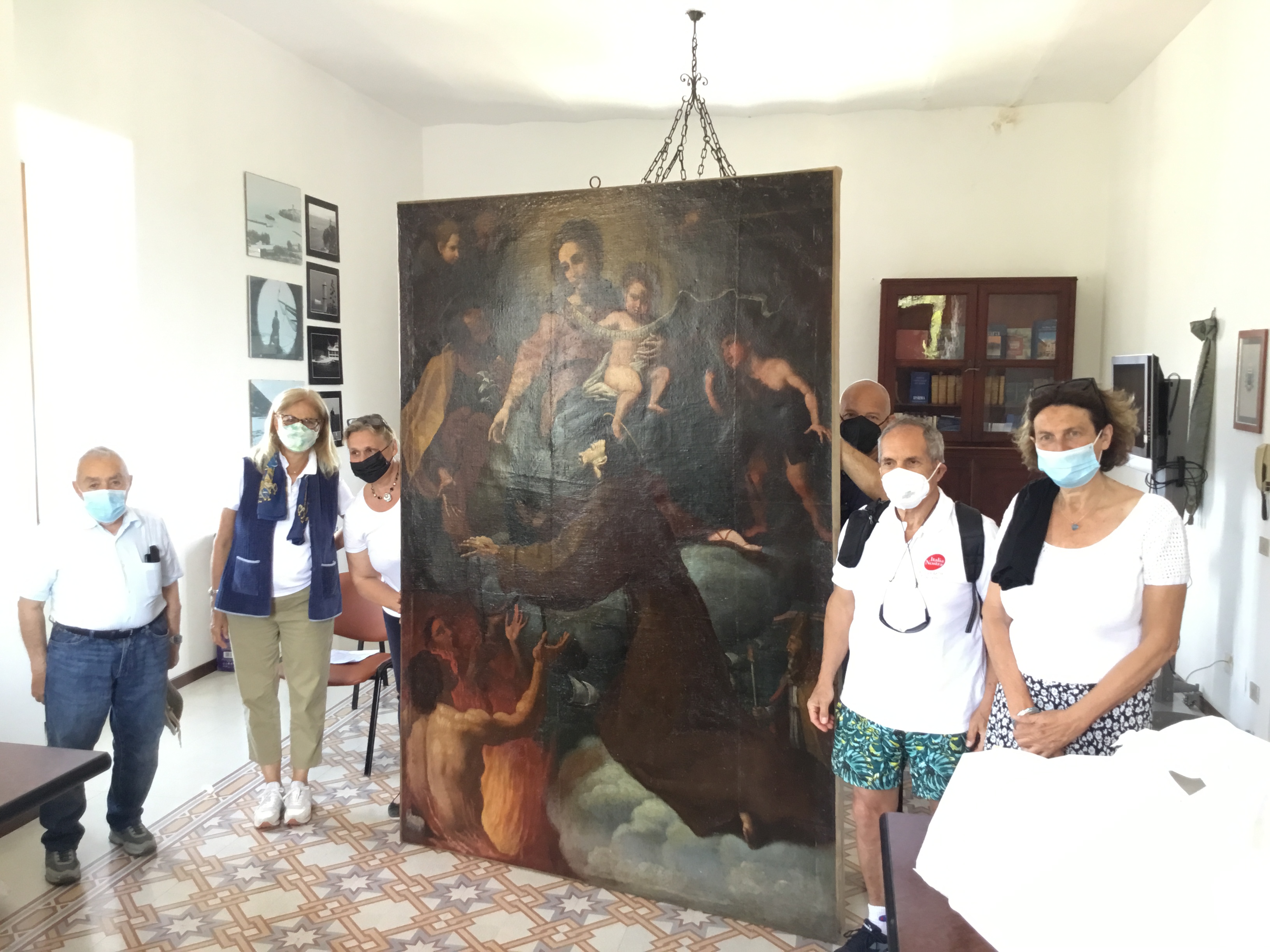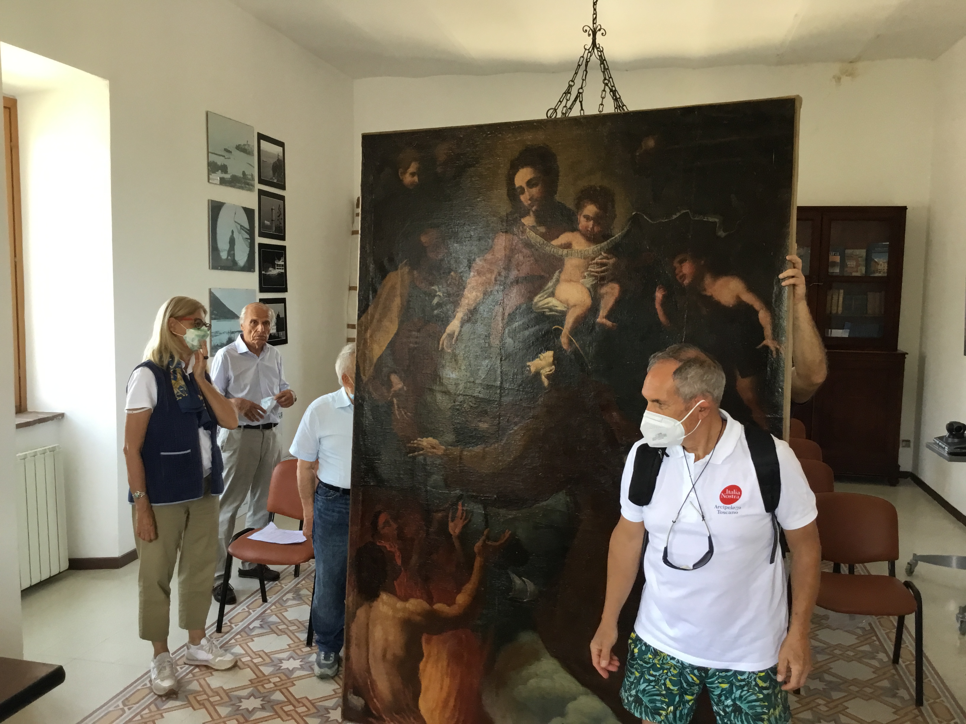 L’11 giugno u.s. Una delegazione della nostra sezione formata dal Presidente e dalla Vice-Presidente ,ha partecipato alla consegna al Sindaco di Capraia Marida Bessi del dipinto seicentesco di scuola genovese restaurato a cura della professoressa Roberta LAPUCCI.L’iniziativa prese corpo l’anno scorso durante una visita a Capraia di alcuni soci della sezione e dal gemellaggio con l’Associazione “Amici di Sant’Antonio” tra i quali militano anche i nostri soci e referenti capraiesi Roberto Moresco e Folco Giusti. Il Consiglio Direttivo ha deliberato quest’anno l’importante investimento che ha permesso alla Prof.ssa LAPUCCI di concludere il lavoro dopo la chiusura della scuola americana di restauro presso la quale il dipinto era stato inizialmente portato. Come si può vedere dalle foto allegate il Sindaco ,in previsione poi di installare il dipinto nella relativa cappella una volta che sarà restaurata, ha voluto appendere il quadro nella sala consiliare ed ha nell’occasione ringraziato sentitamente Italia Nostra sezione Arcipelago Toscano sottolineando questa nuova tappa di una collaborazione che ci vede in piena sintonia.