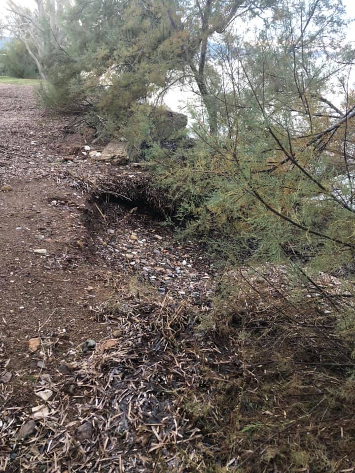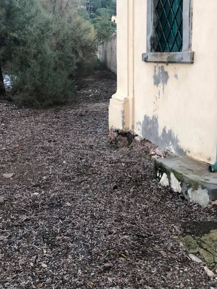 L’abbondanza di posidonia spiaggiata e di rifiuti sparpagliati, le voragini aperte sulla spiaggia e la precarietà crescente delle secolari tamerici lungo tutto il sentiero testimoniano che le onde hanno sbattuto in realtà con forza dal parcheggio comunale fino agli appartamenti della stessa Chiusa. Le foto sono il documento più efficace per dimostrare la situazione.