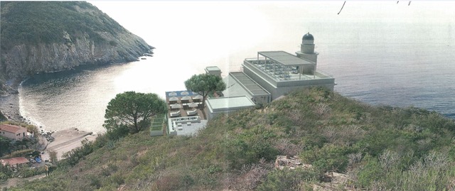 Invece, secondo gli stessi rendering prodotti dalla RTI vincitrice, il progetto prevede la realizzazione di grandi e impattanti opere edilizie esterne che altererebbero l’assetto morfologico originario del magnifico Faro di Punta Polveraia, che sorge in un’area delicata e gravata da vincoli ambientali e paesaggistici nazionali ed europei. Il progetto prevede: la costruzione di una piscina fuori terra con un forte impatto visivo e che modificherebbe lo skyline e la morfologia di un promontorio; uno sbancamento nella zona dell’ex magazzino per la realizzazione di un lounge bar; l’eliminazione dello storico forno del faro per l’insediamento di una reception; la realizzazione di grandi porte finestre “moderne” al posto di quelle originarie; la realizzazione di una finestra a nastro che deturperebbe l’immagine architettonica del Faro e altererebbe la partizione delle aperture della facciata; due pergotende a coprire il magnifico cortile; una scala metallica per salire sul faro.