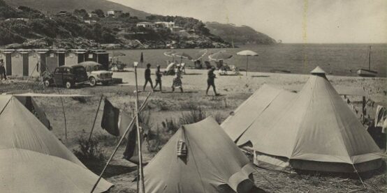 Ad esso, nel corso del decennio ‘50-‘60, si affianca il soggiorno di gente diversa, più modesta economicamente, che sceglie le rare strutture ricettive e il campeggio per godersi le bellezze e la pace dell’isola toscana. Abbiamo così le immagini di tende e roulottes sulla spiaggia della Biodola e di Procchio con panni tesi ad asciugare e auto al seguito; i primi tentativi di ristorante a due passi dal mare a Lacona con tavoli e sedie sotto un tendone, e cabine di legno o incannucciate; i primi ombrelloni e le prime sdraio a interrompere la continuità degli arenili.
