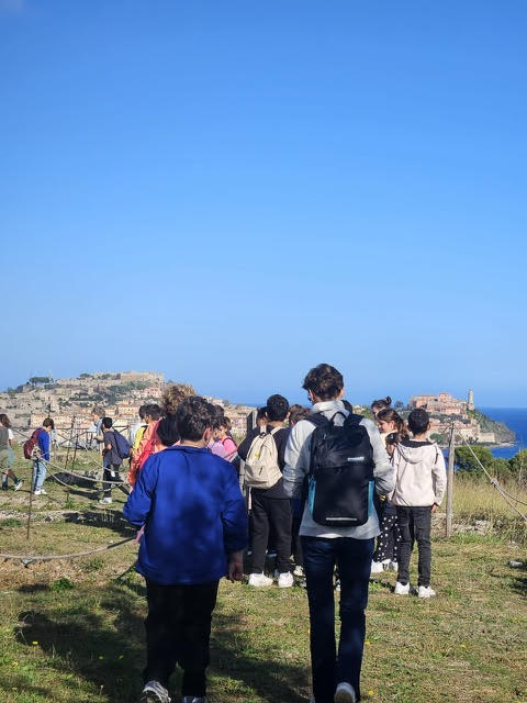 La formula preferita dalle scuole – riproposta ogni anno anche dal Parco nel suo calendario di eventi – è il suggestivo percorso pedonale che da San Giovanni costeggia il mare e sale dolcemente attraverso il boschetto del sentiero vicinale, tra lecci e profumi di macchia mediterranea. Per i più piccoli è un viaggio nel tempo: veri esploratori alla ricerca di tracce antiche, immersi in un paesaggio che racconta storie di ville romane, fortificazioni medicee e rade leggendarie. La luce, i riflessi del mare, le navi moderne che seguono le rotte di quelle antiche: tutto contribuisce a creare un’atmosfera di meraviglia.