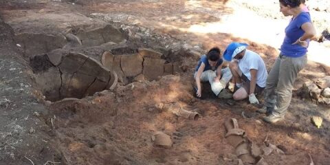 Due gruppetti sono impegnati nei rilievi topografici ed armeggiano su strumenti tecnologici, gli altri curvi nelle trincee, agiscono usando attrezzi tanto rudimentali che potevano essere in possesso anche dell’umanità che ha costruito il complesso archeologico che stanno riportando alla luce, lavorano asportando con cura porzioni minime di terra; sembra impossibile che questo lavoro da formiche abbia già fatto emergere quattro enormi “dolia” (il quinto sta per essere liberato dalla camicia del tempo), i recipienti di terracotta dove gli elbani di due millenni fa ponevano il mosto a fermentare, e le anfore vinarie sparse a terra scomposte dall’incendio che fece crollare questa “cantina”: le pagine di questa storia si leggono così strato dopo strato.
