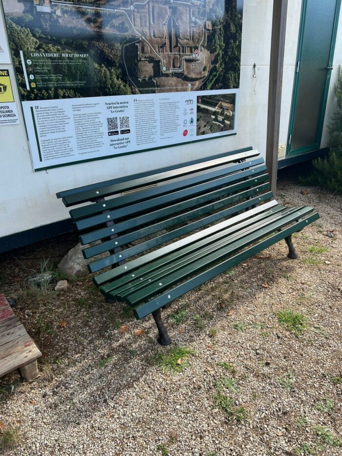 Ma perché mai offrire una panchina? La domanda è lecita. Il progetto alle Grotte è stato concepito anni fa per avvicinare questo grande spazio panoramico all’uso di giardino pubblico, unendo due estremi: zona archeologica protetta e aree per il pubblico, tentando una possibile mediazione. Gli spazi scelti sono stati concepiti per accogliere tanti che vogliano farsi coinvolgere dalla meraviglia del paesaggio intorno, tra natura, storia e cultura, sul mare.